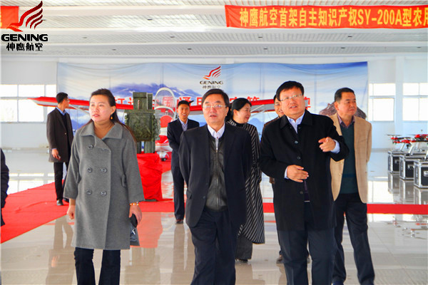 高海濤巡視員及工作組參觀了通遼市神鷹飛機(jī)制造在限公司。通遼市神鷹通用航空有限公司董事長(zhǎng)邱志剛向檢查組詳細(xì)介紹了“SY-200”農(nóng)用飛機(jī)和植保無(wú)人機(jī)研發(fā)制造情況,匯報(bào)了公司當(dāng)前和今后的發(fā)展目標(biāo)和方向。期間,高海濤巡視員還親切地詢問(wèn)了公司在發(fā)展建設(shè)中遇到的困難。